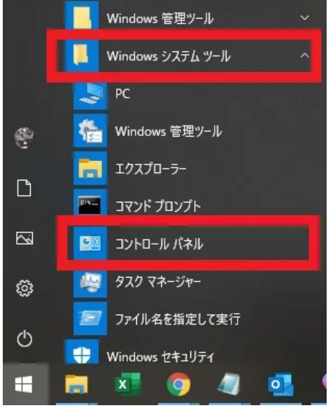 Step1:スタートボタンから「Windowsシステムツール」を開き「コントロールパネル」をクリックします。