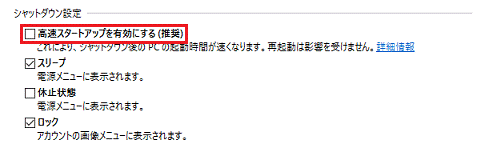 Step5:「高速スタートアップを有効にする(推奨)」のチェックを外します。