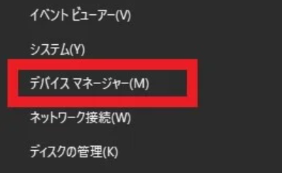 Step1:スタートボタンを右クリックして「デバイスマネージャー」を選択します。