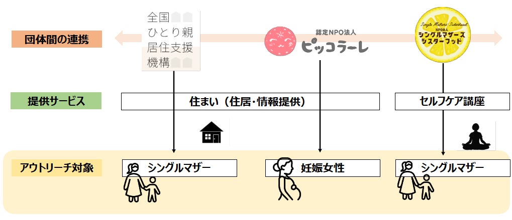女性支援を行うNPO法人3団体の協業により、2023年のプログラムで提供した「住まいの支援」と「メンタルヘルスケア」に加え、今回の取り組みでは、新たに「就労支援」を提供します。シングルマザーや予期せぬ妊娠をした方の就労支援は様々なニーズが山積しており、対象者が自身の特性や希望を明確にし、長期的なビジョンを持てるよう、伴走型サポートの提供を目指しています。