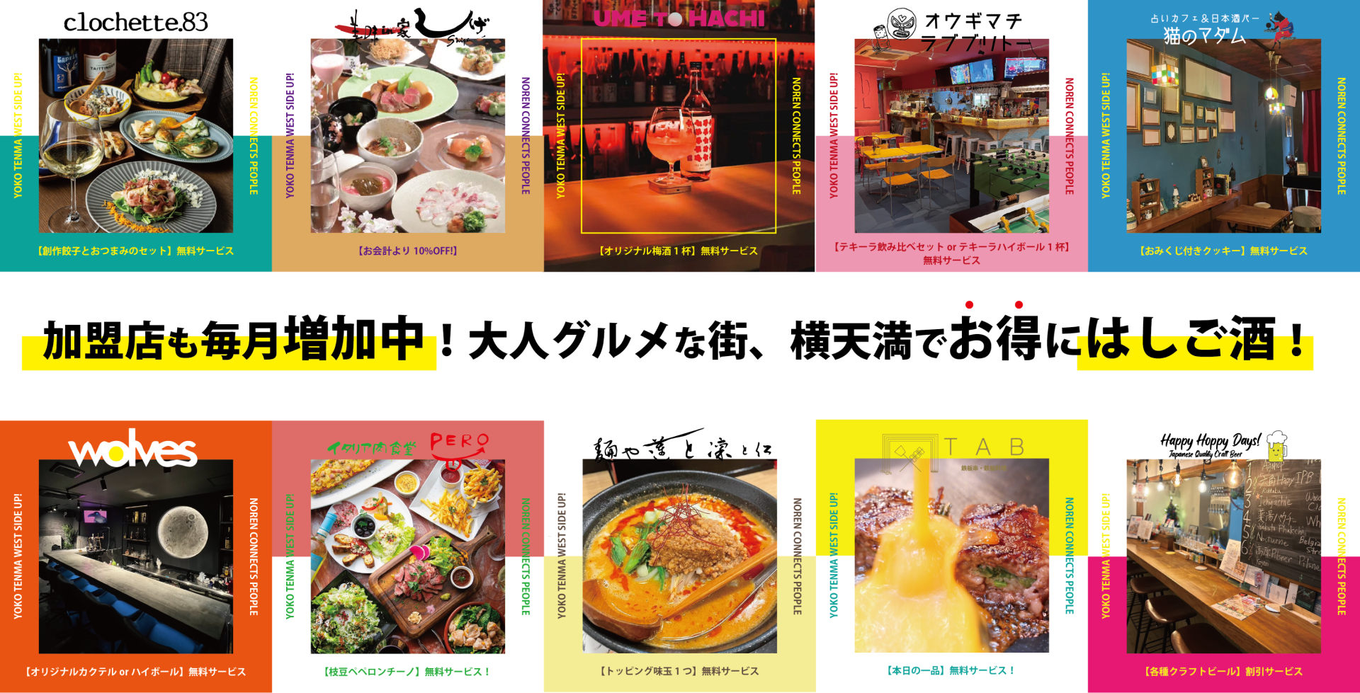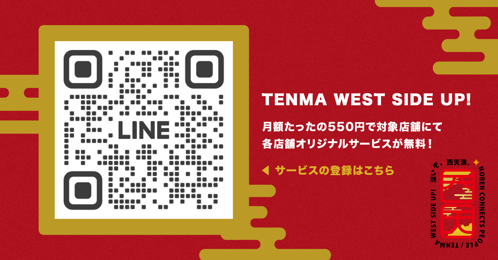 大阪JR天満の西側に位置する大人ディープなエリア横天満の加盟店にて、フード、ドリンク、割引サービスが受けられるサブスク「TENMA WEST SIDE UP!」提供を開始!