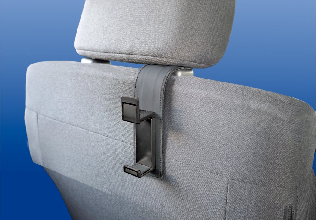 ヘッドレストのポールに引っ掛けるだけの簡単装着。