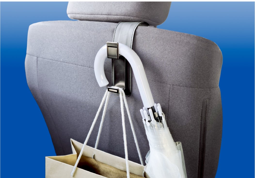 ヘッドレストポールに取り付けることで、バッグや買い物袋、傘などを手軽に掛けることができ、車内をスッキリと整理することができます。