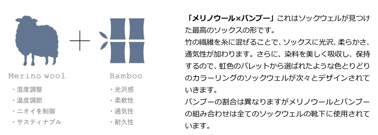 一年を通して快適に使用できる高い機能性を持つメリノウールをベースに、サスティナブルなバンブー(竹)やアルパカをブレンドしたオリジナル繊維を紡ぎ、より良い履き心地のソックスに仕上げました。