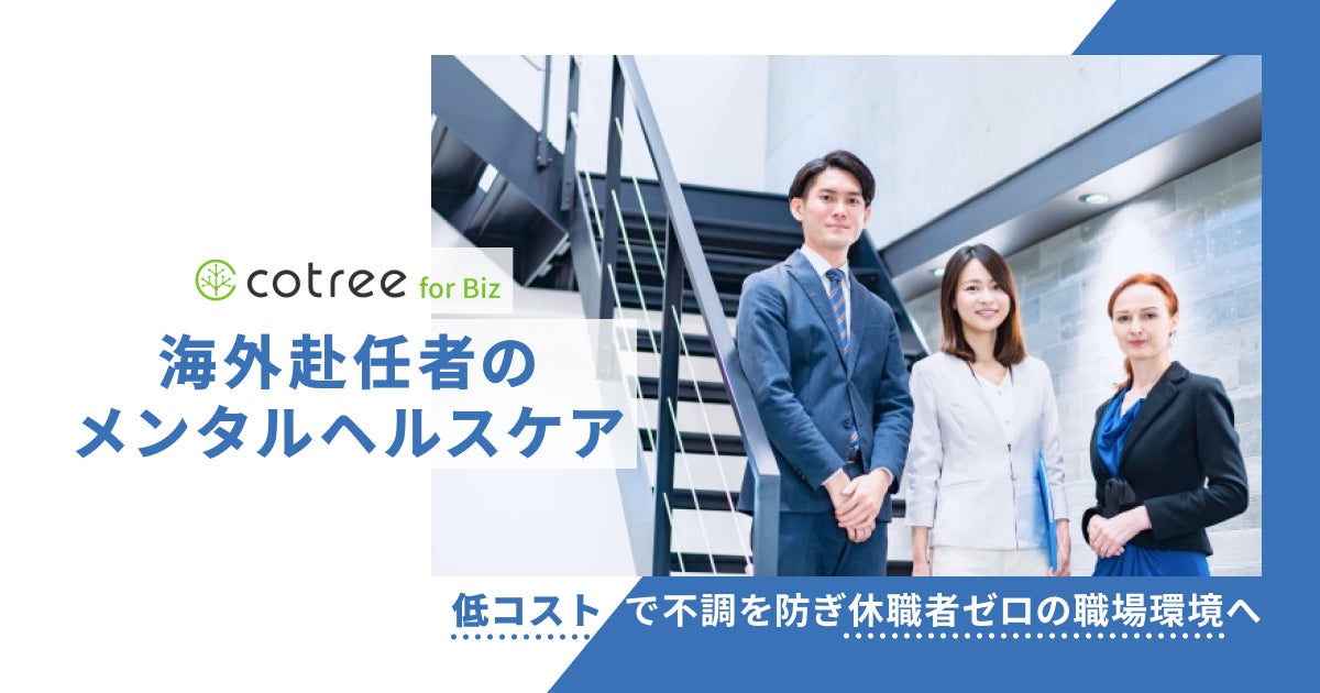 株式会社cotree(本社:東京都港区、代表取締役:西岡 恵子、以下cotree)が提供する法人・団体向けメンタルヘルスケアサービス「cotree for Biz」は、株式会社SaveExpats(本社:東京都渋谷区、代表取締役: 岩田 竜馬、以下SaveExpats)と協働し、海外赴任向けのヘルスケアパッケージの提供を開始します。