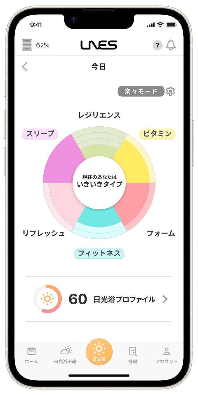project LNESが提案する、新しいウェルネスセルフケア習慣は、いつものお出かけを太陽光を通じてお手軽に健康的で楽しいものに変える新しいセルフケアの形です。日光を浴びることで得られる「睡眠の質の向上」「ビタミンD生成の促進」、そして「歩行による身体的メリット」という3つの健康効果を組み合わせ、日常に自然に取り入れることを目指します。日光浴は、ただ多く浴びれば良いわけではなく、個々のライフスタイルに合わせて、無理せず楽しく効果的に取り入れることが重要です。LNESでは「LNES® SL-04」を用いて「自分に合った新しい日光浴を伴うお出かけ」へ導くことで、日本人が健康や美容を自然に気軽に習慣化していくことを目指します。