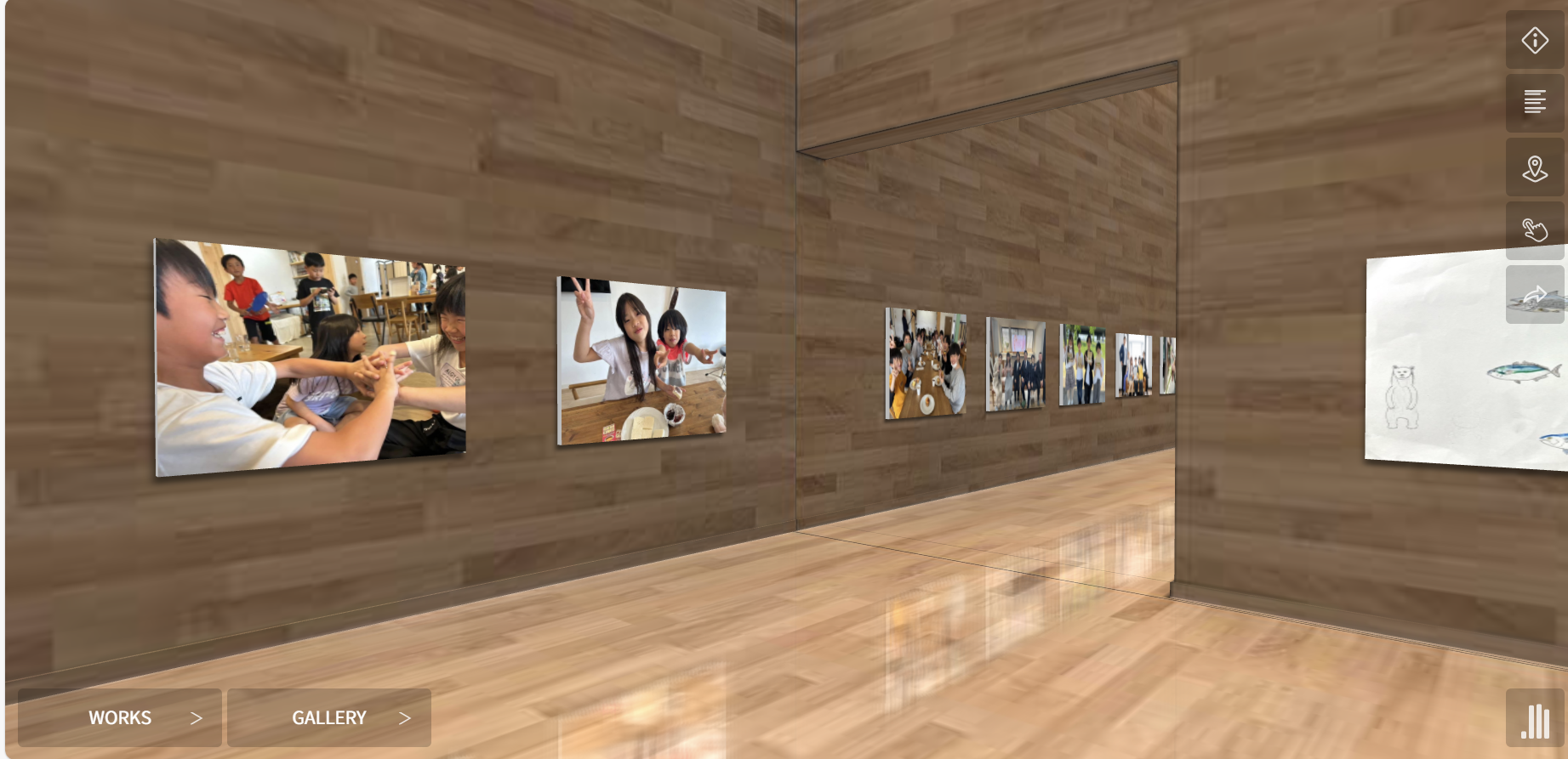 バーチャル空間に展示された子ども達の絵画