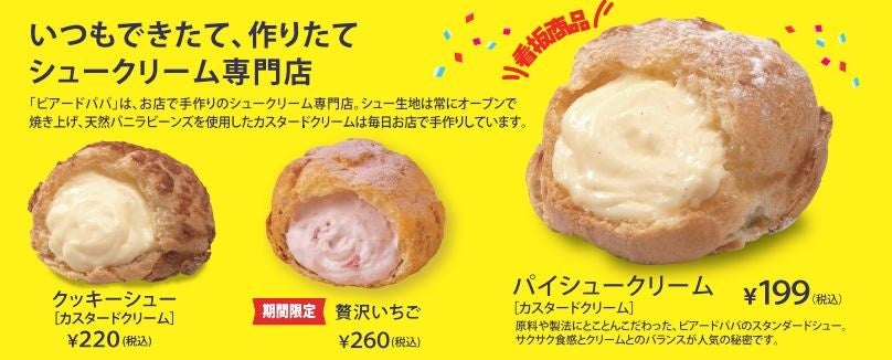 いつも出来立て・作りたて!実演販売スタイルの『ビアードパパ』は日本発・世界中で愛されているシュークリーム専門店です。