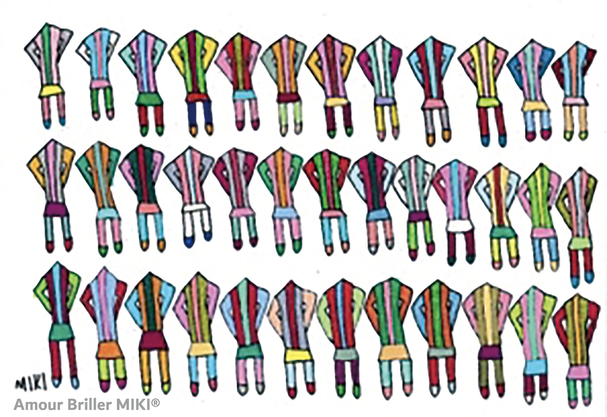 150色以上の色彩を用いた、一つとしてない同じ組み合わせが独創的な作品です。その豊かな表現は、社会に存在する多様な個性を象徴しています。この作品には、「みんな個性があって大好き!」という彼女の温かいメッセージが込められています。