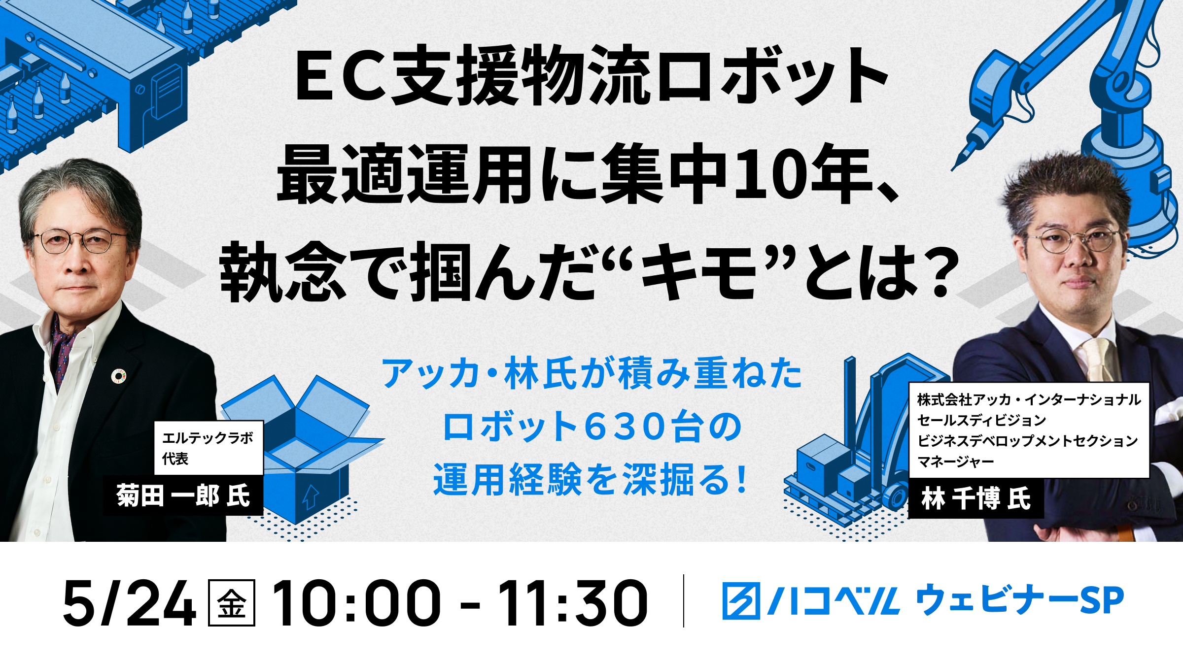 【2024年5月24日(金)ハコベルウェビナー開催】EC支援物流ロボット最適運用に集中10年、執念で掴んだ“キモ”とは?