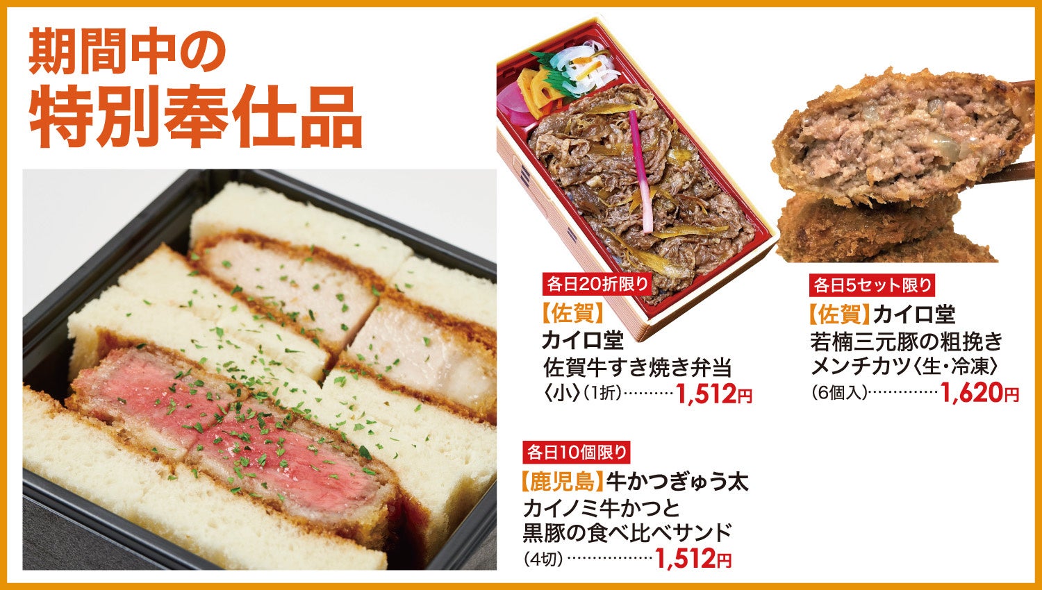 全国の有名駅弁とうまいものをテーマにした物産展が佐賀玉屋で今年も開催。日替わりで奉仕品提供も。