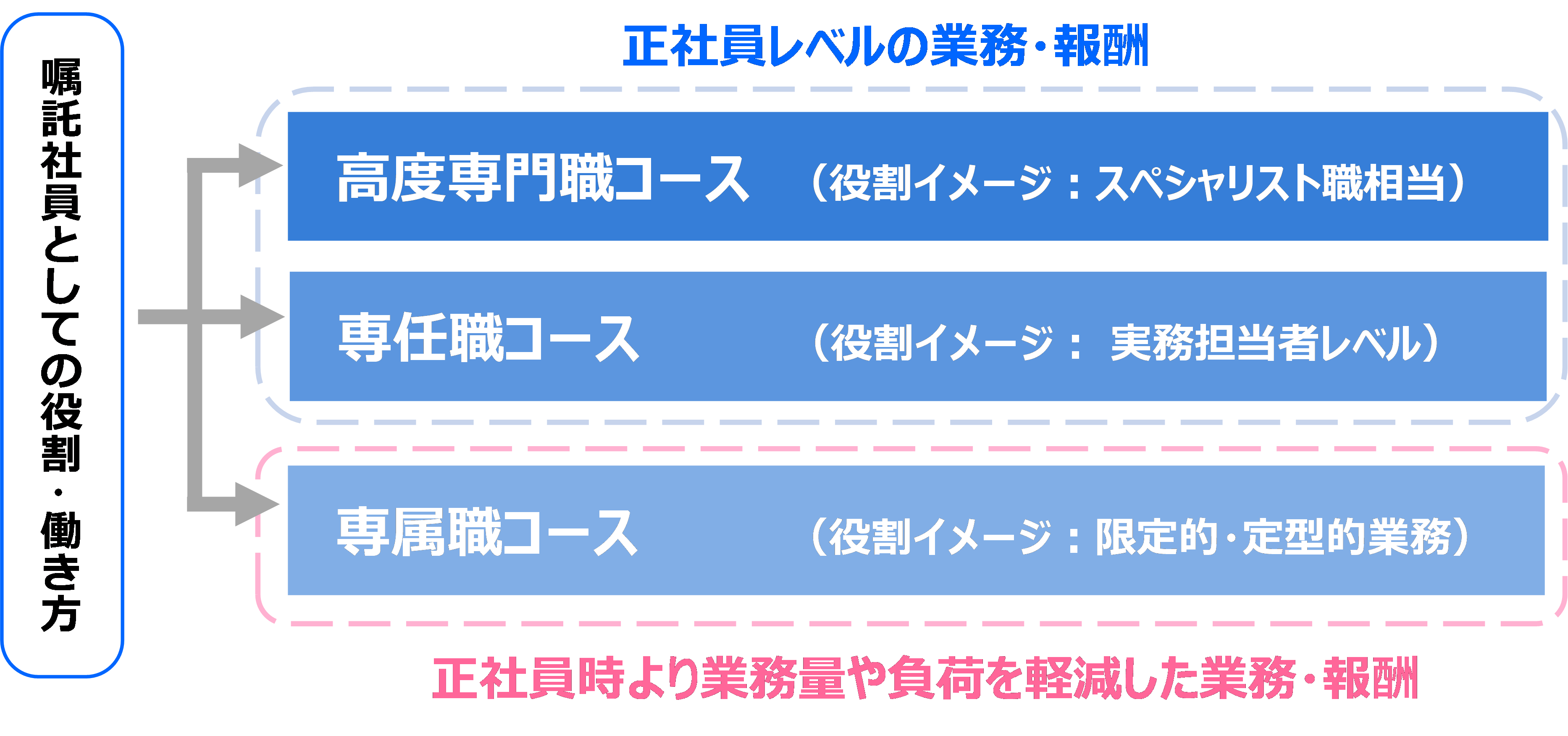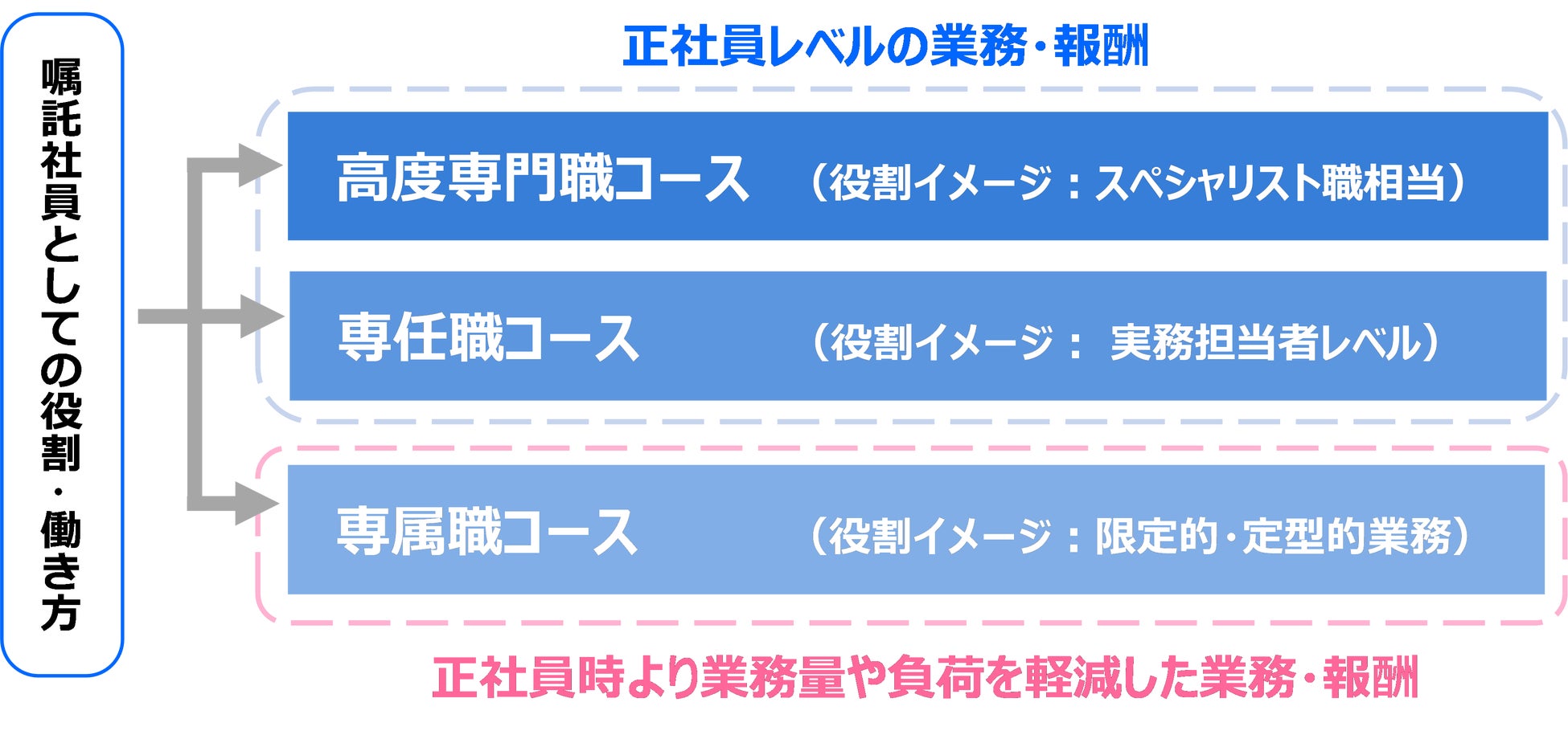 高度専門職コースと専任職コースには、役割•貢献に対する嘱託給を同様の役割を果たす正社員と同水準で設定