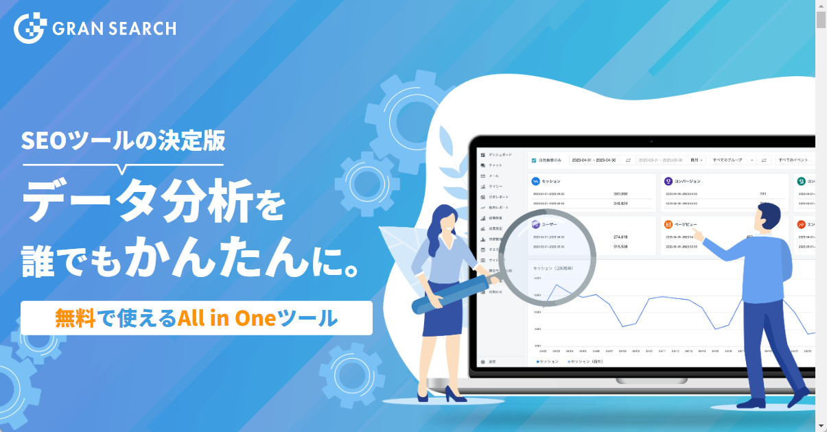 「GRAN SEARCH」は、SEO対策に必要なあらゆる機能を一つに集約した、オールインワンのSEOツールです。