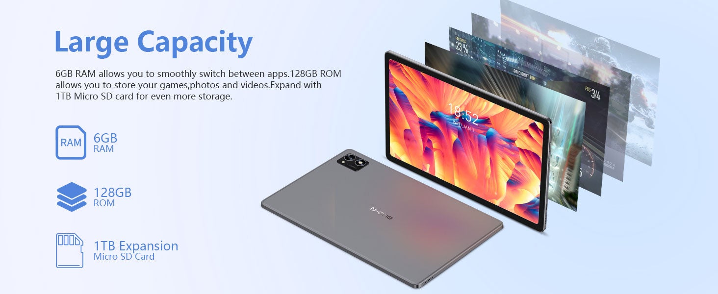6GBのLPDDR4Xのランニングメモリをしているため、より多くのプログラムを同時に実行しながら、高速な切り替えます。128GBのメモリチップにより、高速にデータの読み書きが行えます。アプリケーションのインストールとロードの高速化、さらにTFカードの容量拡張にも対応できます。