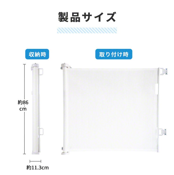 サイズ:収納時:約11.3×7×86cm、フェンスの高さ:約79cm、フェンスの長さ:最大150cm