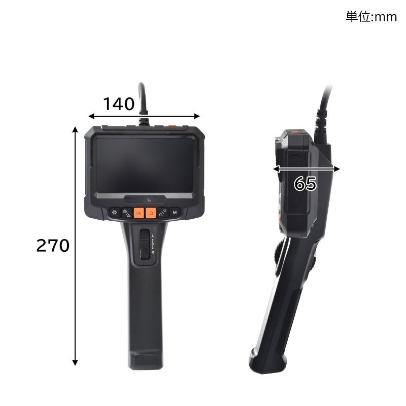 本製品は先端カメラ径8mm、正面と側面にカメラを搭載し手元操作で210度カメラが動く工業内視鏡です。