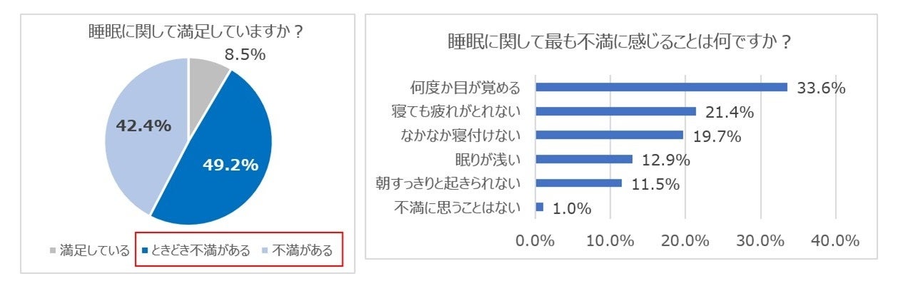 コロナ禍以降、睡眠関連市場は急拡大しています。2024年10月の当社調査において、「睡眠に不満を持つ」方は91.5%。「何度か目が覚める」「寝ても疲れが取れない」など、多くの方が何らかの悩みを抱えている状況(※➁)です。