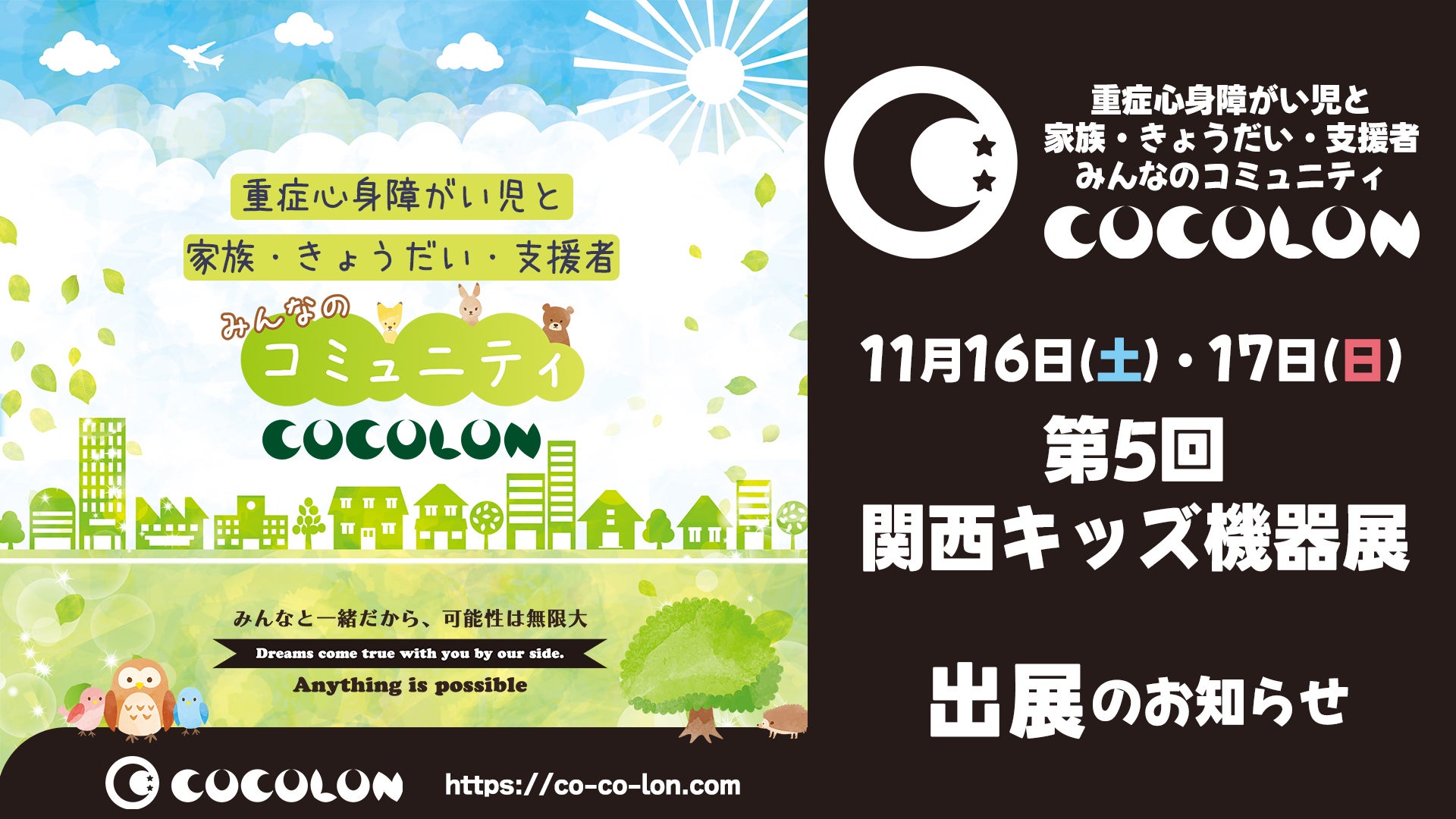 重症心身障がい児のと家族や支援者向けに学び・遊び・情報を提供をする「COCOLON」(運営:特定非営利活動法人EPO、東京都江戸川区、代表:齋藤えりか)は、第5回関西キッズ機器展に出展します。このイベントは11月16日、17日に大阪南港ATCエイジレスセンターで開催され、一般社団法人ナチュラルハートフルケアネットワークが主催します。コミュニティの紹介やイベントの案内、遊びプログラム、新規事業所立ち上げ支援をブースで展示・説明します。