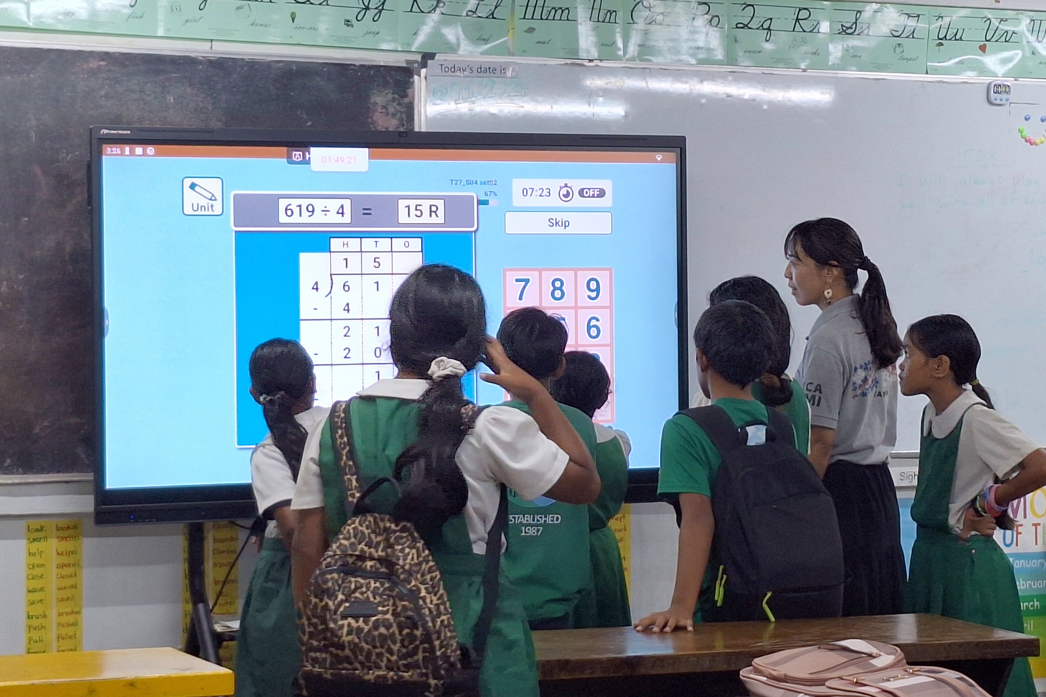 現地の先生からは「板書の保存機能」が好評です。複数のクラスを受け持つ際も、一度書いた内容を保存して次の授業で再利用できるため、準備の手間が省け、効率的な指導が可能になりました。