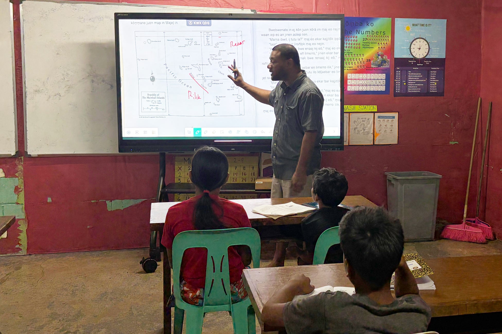 開発途上国の“教材不足”を解決する糸口に。マーシャル諸島共和国の小学校2校に、電子黒板「ミライタッチ」を寄贈。