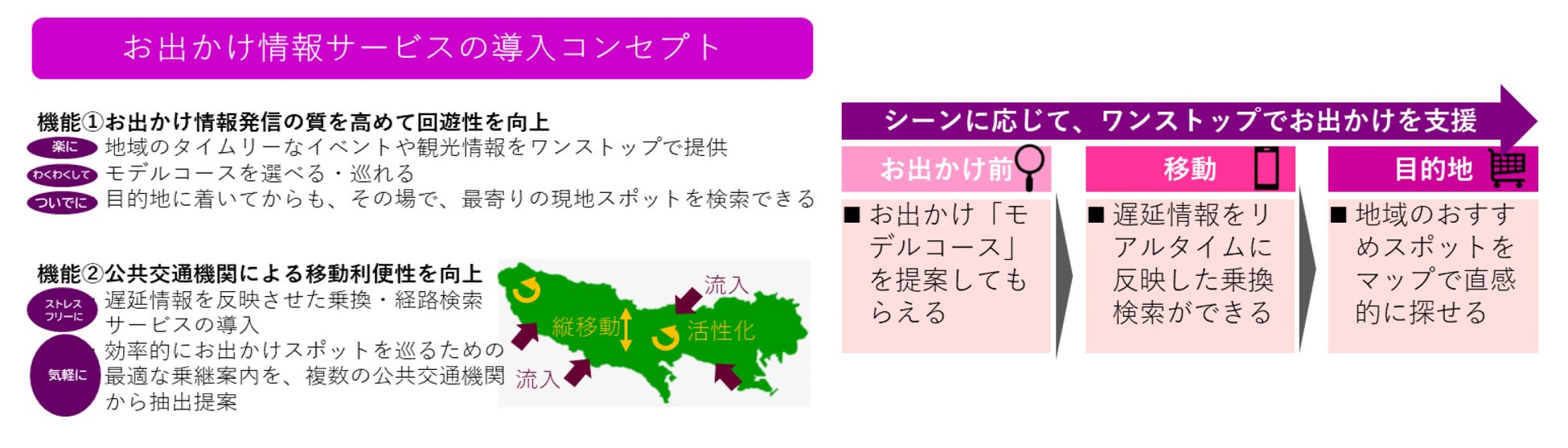 調布市(市長:長友 貴樹),多摩市(市長:阿部 裕行),株式会社ヴァル研究所(代表取締役:菊池 宗史),及び,京王電鉄株式会社(代表取締役社長:都村 智史)は,先の新型コロナウイルス感染流行以降都内で戻りきらない人流(※V-RESAS「移動人口の動向(東京都)」)の活性化や,移動利便性の改善を目的として,スマートフォン等で利用可能な「お出かけ情報サービス」を,2024年5月1日10時に公開します。