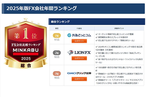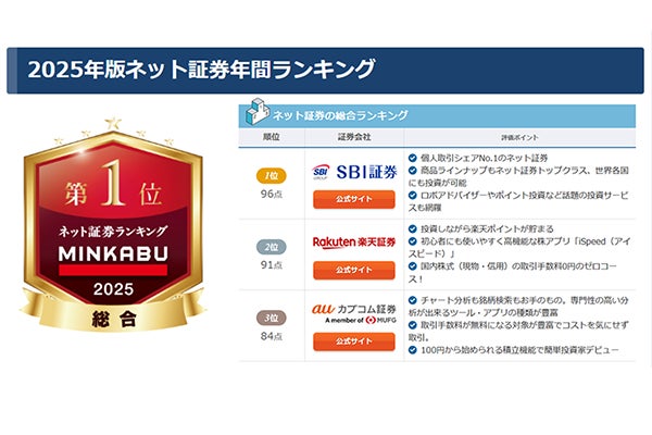 2025年 ネット証券・FX会社の年間ランキングを発表「MINKABU」 ネット証券・FX会社比較より一挙公開