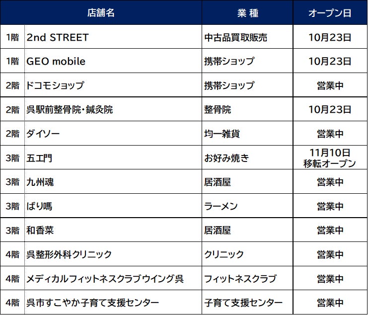 この度当社が運営を引き継ぎ、「ゆめタウン呉レクレ館」として新規専門店の導入や、既存専門店の改装を行い順次リニューアルしてまいります。