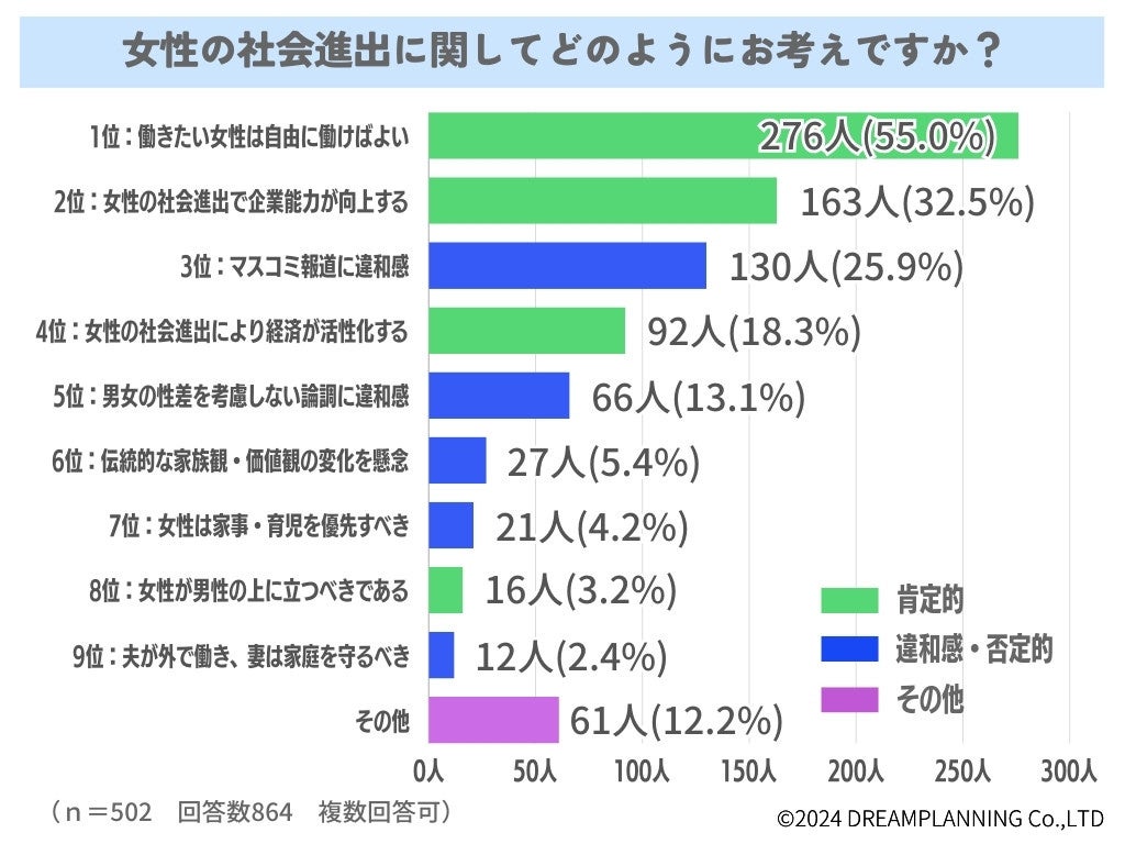 1位は「働きたい女性は自由に働くのがいい」55.0%
