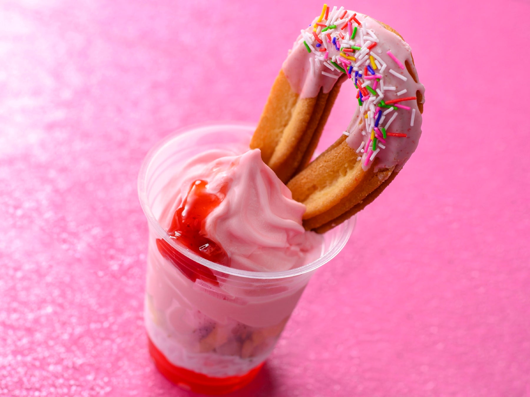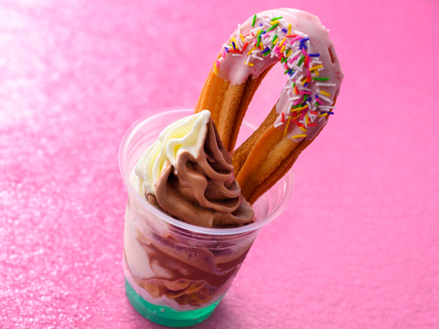 また新たなお昼のパレード「イッツ・ア・スウィーツフルタイム!」に登場するフロートをイメージしたスウィーツ・ポップ・ワールドサンデーが3種類登場します。「アイスクリームコーン」では、ゼリー、ホイップ、ソフトクリーム、ソース、すべてがストロベリー尽くしのサンデー、「ラケッティのラクーンサルーン」ではライムゼリーに、濃厚なチョコとミルクのソフトクリームを合わせたサンデー、「スクウィーザーズ・トロピカル・ジュースバー」ではオレンジゼリーに、マンゴーとミルクのソフトクリームを合わせたフルーティーなサンデーを販売します。