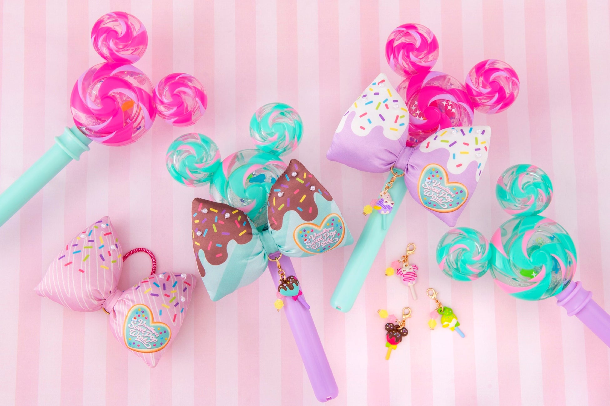 スウィーツがモチーフになったカチューシャやショルダーバッグなどの身につけグッズや、ミッキーシェイプのキャンディーをイメージしたデザインのスウィートポッピン・スティックが登場します。スウィートポッピン・スティックは振ってシャカシャカと音を鳴らしたり、ヘアゴムやチャームなどをつけて自分好みにカスタマイズしたりすることができます。お菓子でいっぱいのパークにぴったりのコーディネートをお友達と一緒に楽しんでみてはいかがでしょうか。