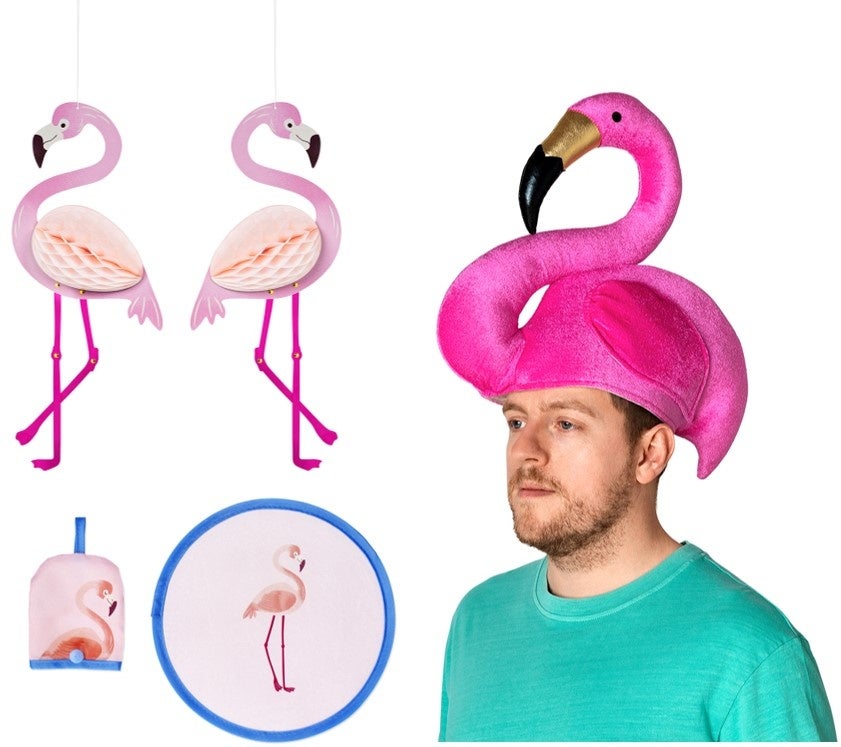 パーティーデコレーションは、ぶら下げて南国気分!うちわとハットで、”わたしフラミンゴ”