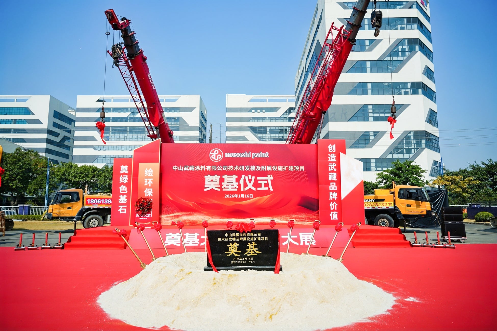 武蔵塗料グループは、2026年1月16日、中国広東省中山市にある中山武蔵塗料有限公司において、第二工場新棟の起工式を実施しました。