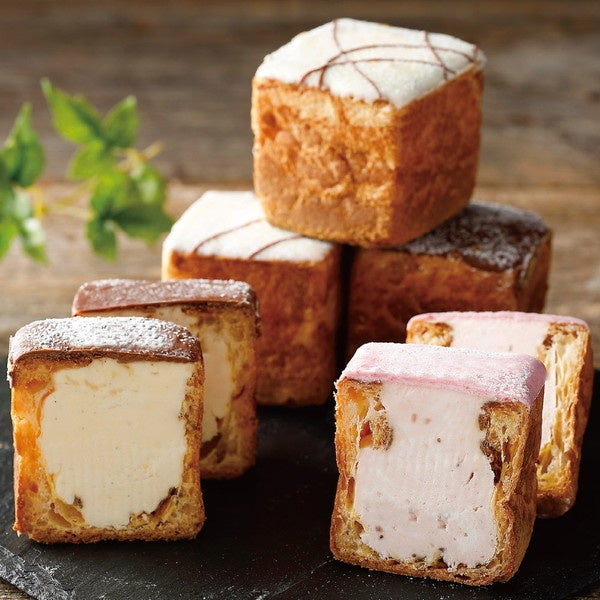 をパイ生地にグラニュー糖をふりかけて焼いた、サクサクの軽い甘さのリーフパイでサンドしました。