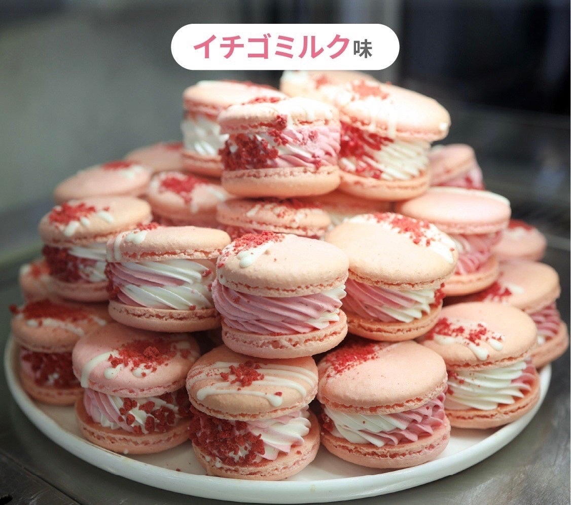 表面はピンク色のジェノワーズで覆われており、ストロベリーの食感を楽しむことができ、甘みがいいアクセントになります。