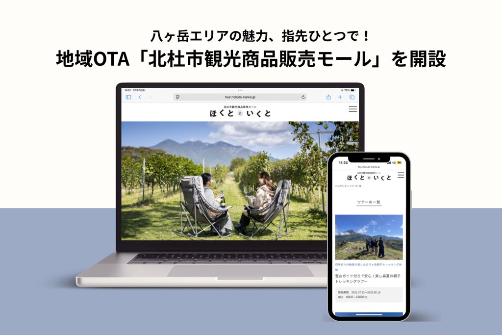 山梨県北杜市(市長:大柴邦彦)と一般社団法人北杜市観光協会(会長:浅川力三)は、市内の周遊性の向上と体験価値の向上による収益化を目指し、観光客が八ヶ岳エリアの多彩な体験コンテンツをより手軽に楽しめる地域OTAサイト「北杜市観光商品販売モール」(https://tour.hokuto-kanko.jp/)を3月28日より開設し、運用を開始いたしました。