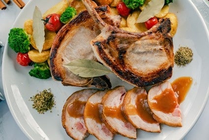 さつまいものココナッツロースト: 甘く香ばしいココナッツがさつまいもの風味を引き立てます。 紫キャベツのラぺとりんご生ハム: 爽やかなジュニパーベリーが素材の味をまとめ上げます。 ローストポーク ローズマリー風味のソース: ローズマリーの清々しい香りが豚肉の旨味を引き出します。
