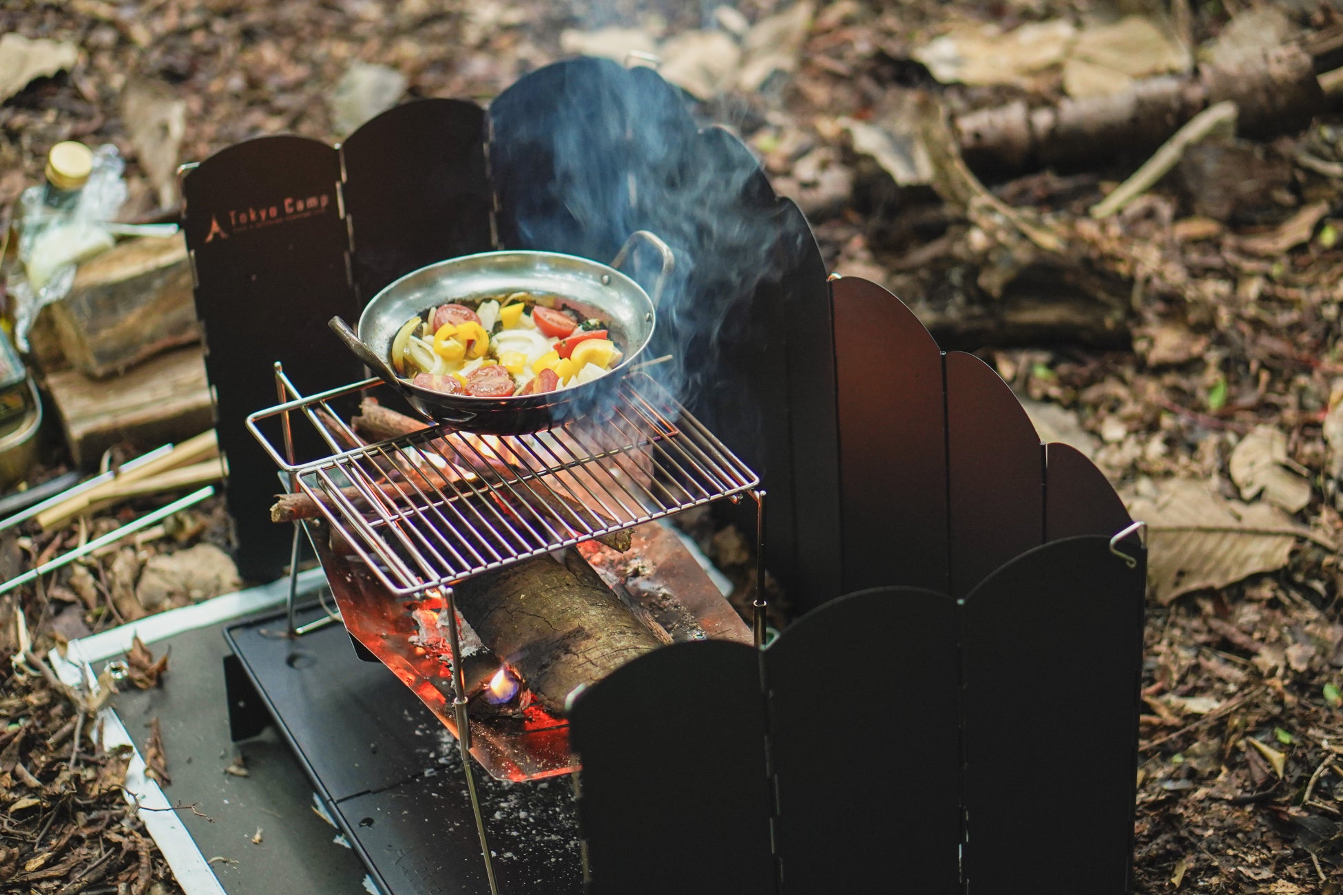 焚き火台にそのまま取り付けることで、炎が風の影響を受けず、安定した炎を真上に供給できます。焚火飯の調理性能が格段にUP。