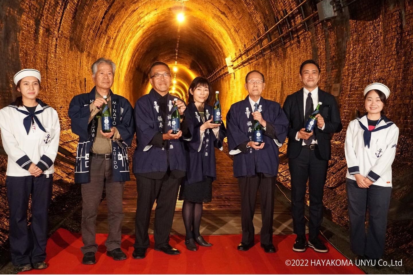2020年度から2024年度までの5年間、早駒運輸では‟世界初”神戸から世界に発信するサステナブルな取り組みとして、国登録有形文化財 土木学会選奨土木遺産である「湊川隧道」に年間限定3,000本の日本酒を貯蔵し販売する取り組みを行って参りました。この度、本プロジェクトに対する、売上金の一部を湊川隧道の保存・活用に資するための寄与式を行います。