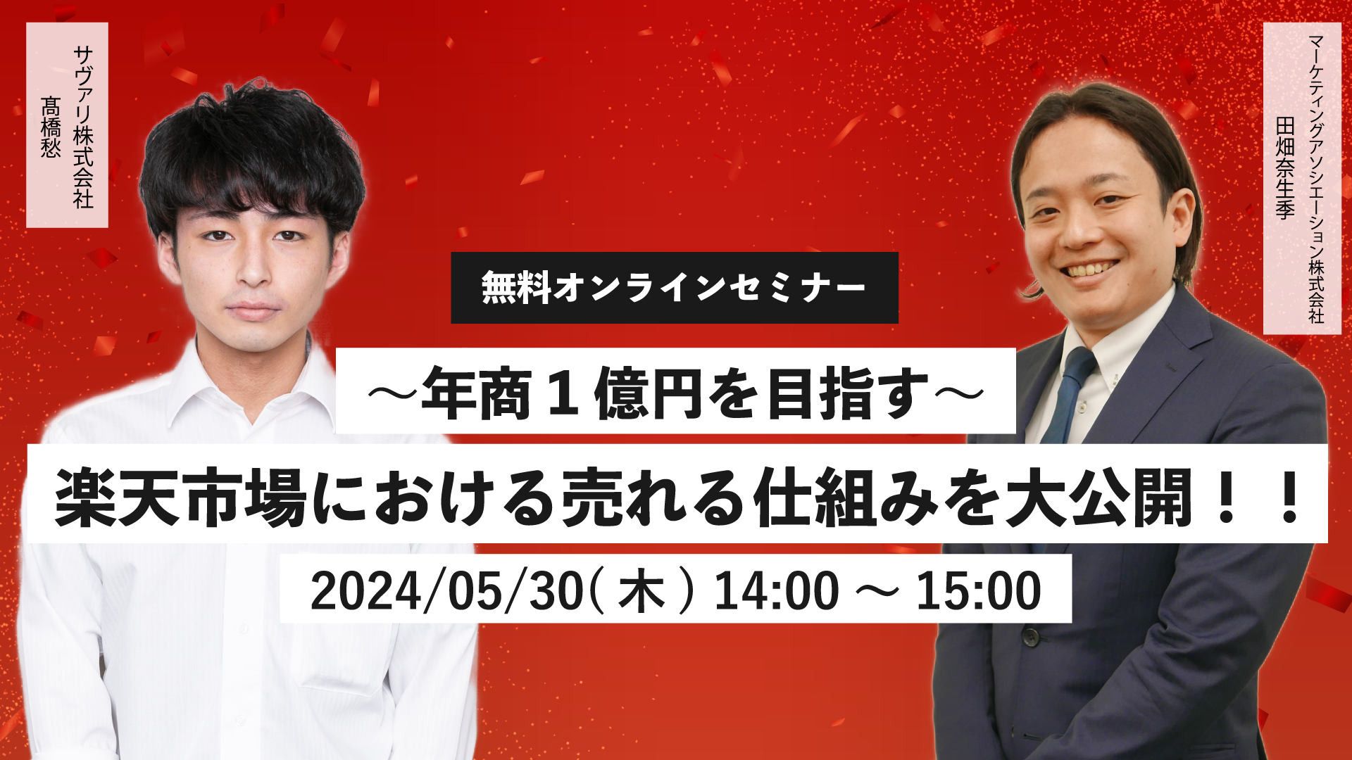 ECサイトの運営代行サービスを提供しているマーケティングアソシエーション株式会社(本社:東京都台東区 代表取締役:中園広和、以下当社)は、2024年5月30日(木)に、ウェブセミナー「~年商1億円を目指す~ 楽天市場における売れる仕組みを大公開!!」を、サヴァリ株式会社様と共催いたします。