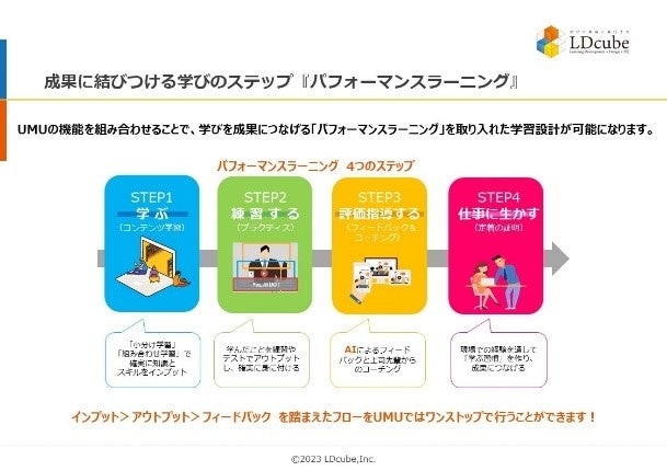 研修のスタイルにとらわれない企業向け人材育成サービスを提供する株式会社LDcube(本社:東京都千代田区、代表取締役社長:新井澄人、以下「当社」)は、当社が公式パートナーを務めるラーニングプラットフォーム「UMU(ユーム)」の生成AIを活用したチャットボットによる会話型ロープレトレーニングサービスを2025年6月2日より提供開始することを踏まえ、「【教える人がいないを解決!】生成AIとの会話型ロープレで営業教育を変革!」ウェビナーを開催しますので、お知らせします。