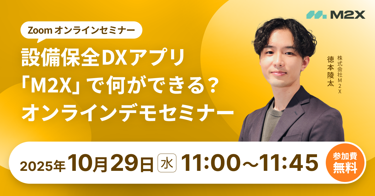 株式会社M2X(本社:東京都中央区、代表取締役:岡部晋太郎)(以下「当社」)は、「設備保全DXアプリ『M2X』で何ができる?オンラインデモセミナー」と題した無料オンラインセミナーを開催致します。