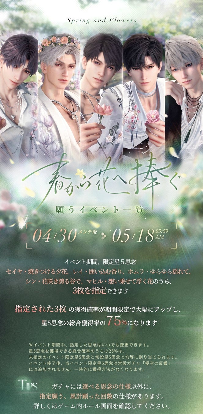 「春から花へ捧ぐ」星5思念期間限定確率UPガチャ開催
