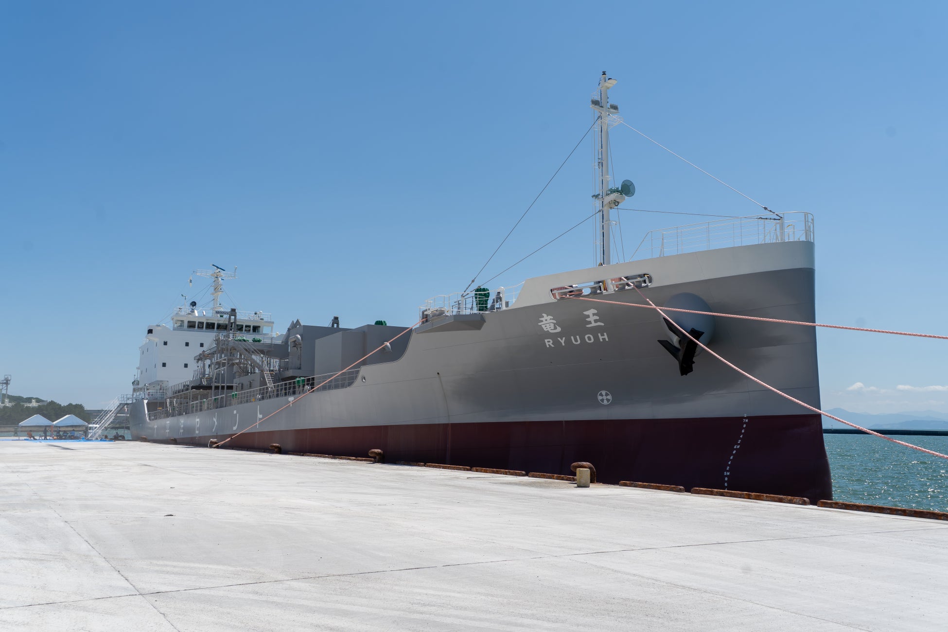 「竜王」は、環境負荷の低減と運航効率の向上を追求した次世代型の内航貨物船で、太平洋セメント株式会社のセメント輸送に従事します。