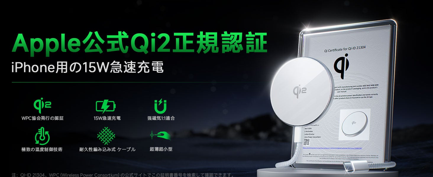 数ヶ月にわたる精密な開発と455,734人以上のユーザーからのフィードバックを経て、急速充電、強力な磁気吸着、安全性、美しさ、便利さを兼ね備えた「Qi2認証のMagSafeワイヤレス充電器」を誇りを持ってご紹介します。これにより、あなたのワイヤレス充電体験が新しい次元に引き上げられます!