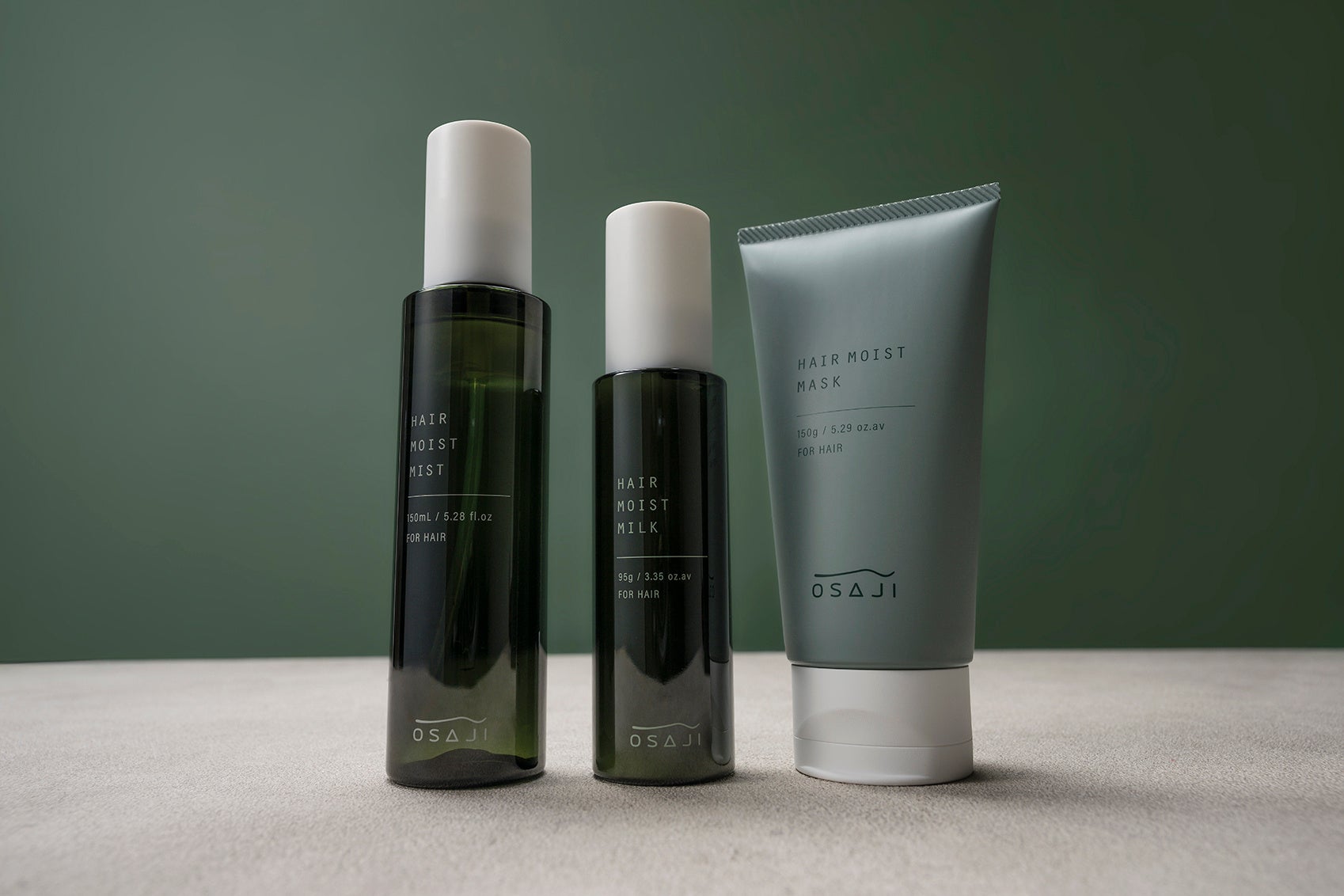 髪質・髪の悩みに合わせてお選びいただける「ヘアモイスト ミスト」「ヘアモイスト ミルク」「ヘアモイスト マスク」の3種。