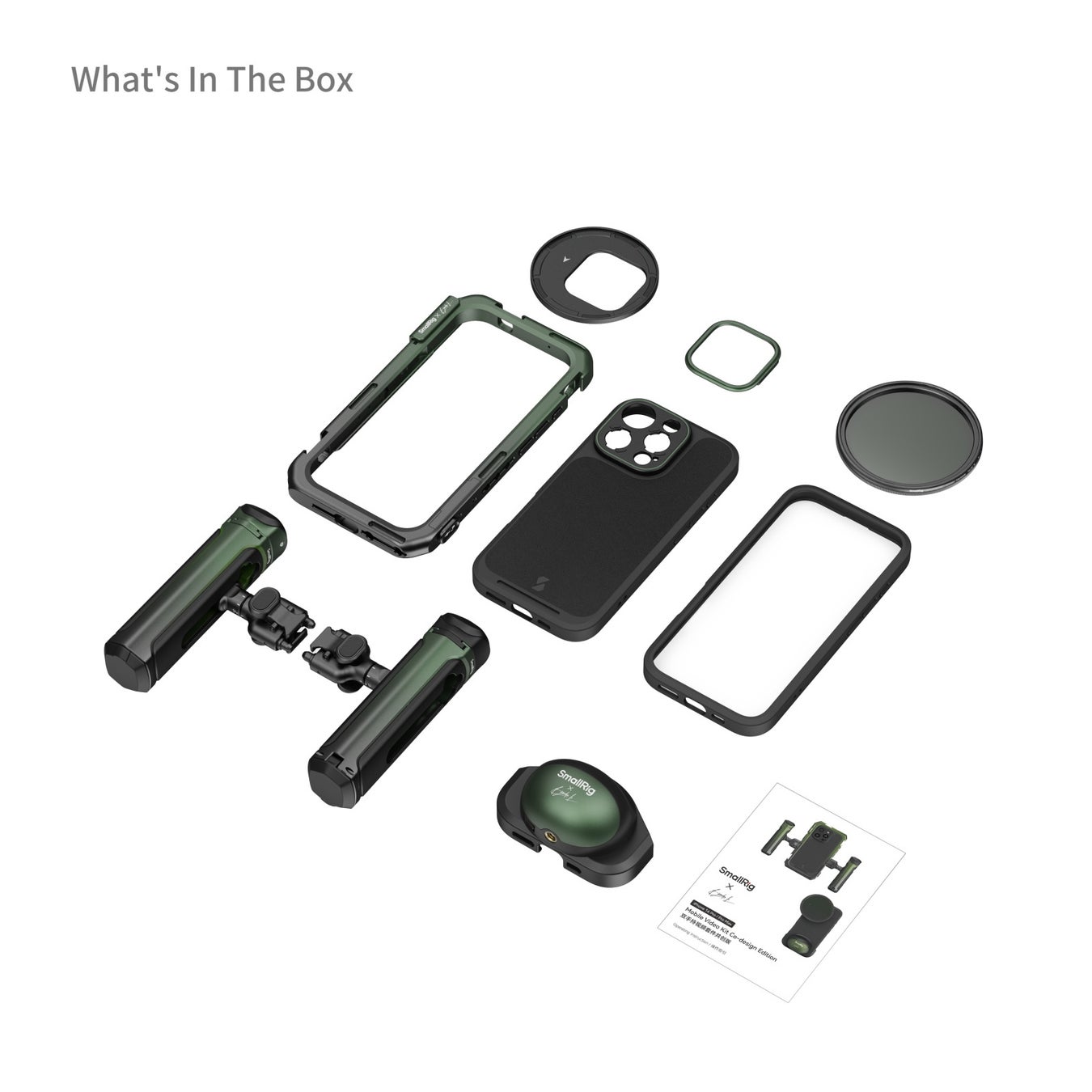 このキットは、スマホでのプロレベルのビデオ録画、ライブストリーミング、短編映画制作などを支援することを目的としています。キットには、FilMovスマホケース、FilMov Tマウントレンズバックプレート、FilMov キャプチャーグリップ、専用ケージ、回転ハンドル(ワイヤレスコントロール付き)、回転サイドハンドル、TPUソフトフレーム 、FilMov 67mm磁気フィルターアダプターや67mm 1-9ストップVND磁気フィルターなどが含まれています。
