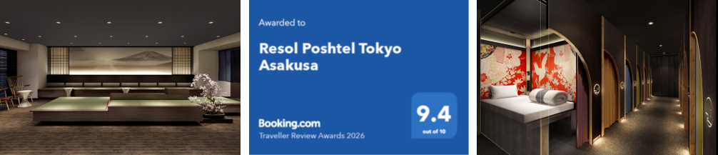 キャビン型宿泊施設「リソルポシュテル東京浅草」Booking.com「Traveller Review Awards 2026」を受賞