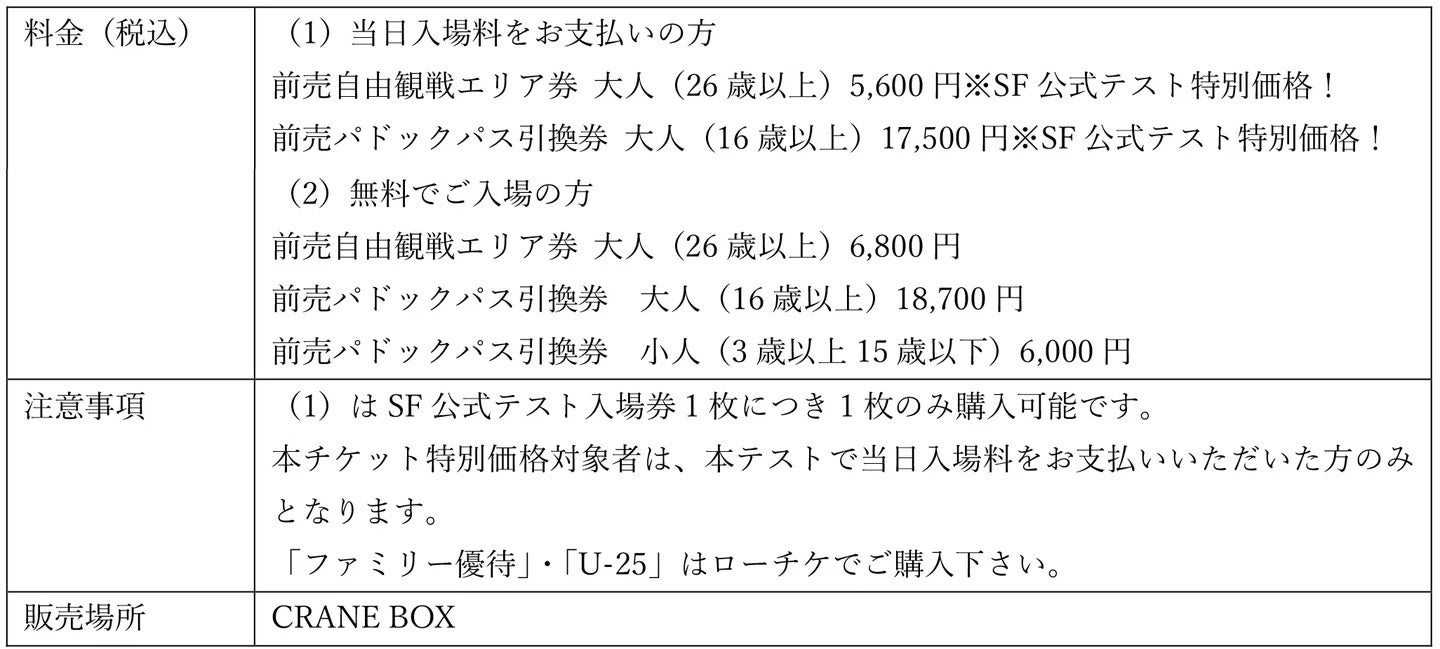 公式テストへご来場のお客様限定!7⽉に富⼠スピードウェイで開催される2025 SUPER FORMULA 第6-7戦前売観戦券を特別価格で販売!是⾮、この機会にお買い求めください!