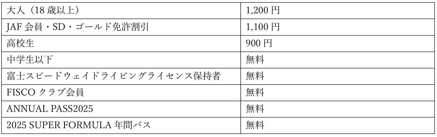 2025 SUPER FORMULAシリーズ年間パス、2025 SUPER FORMULA第6-7戦前売観戦券、中学⽣以下は無料でご観戦いただけます!また、上記対象外の⽅も割安でご観戦いただけます!