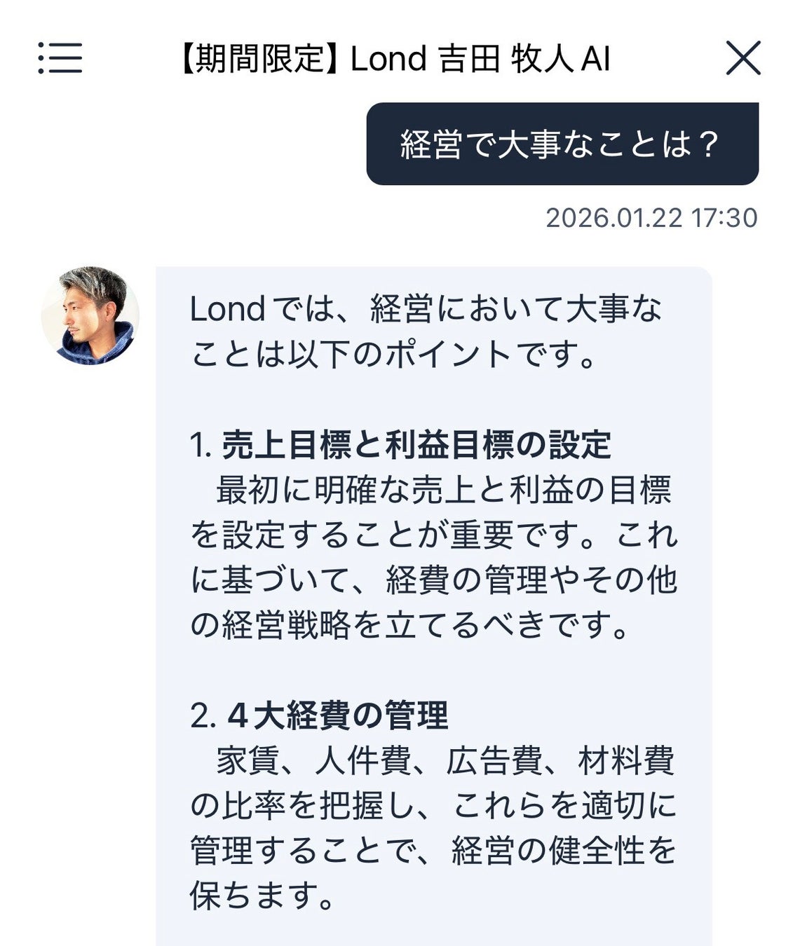 🔍【関連記事】Lond CEO吉田牧人氏の経営哲学を学べるAIについて